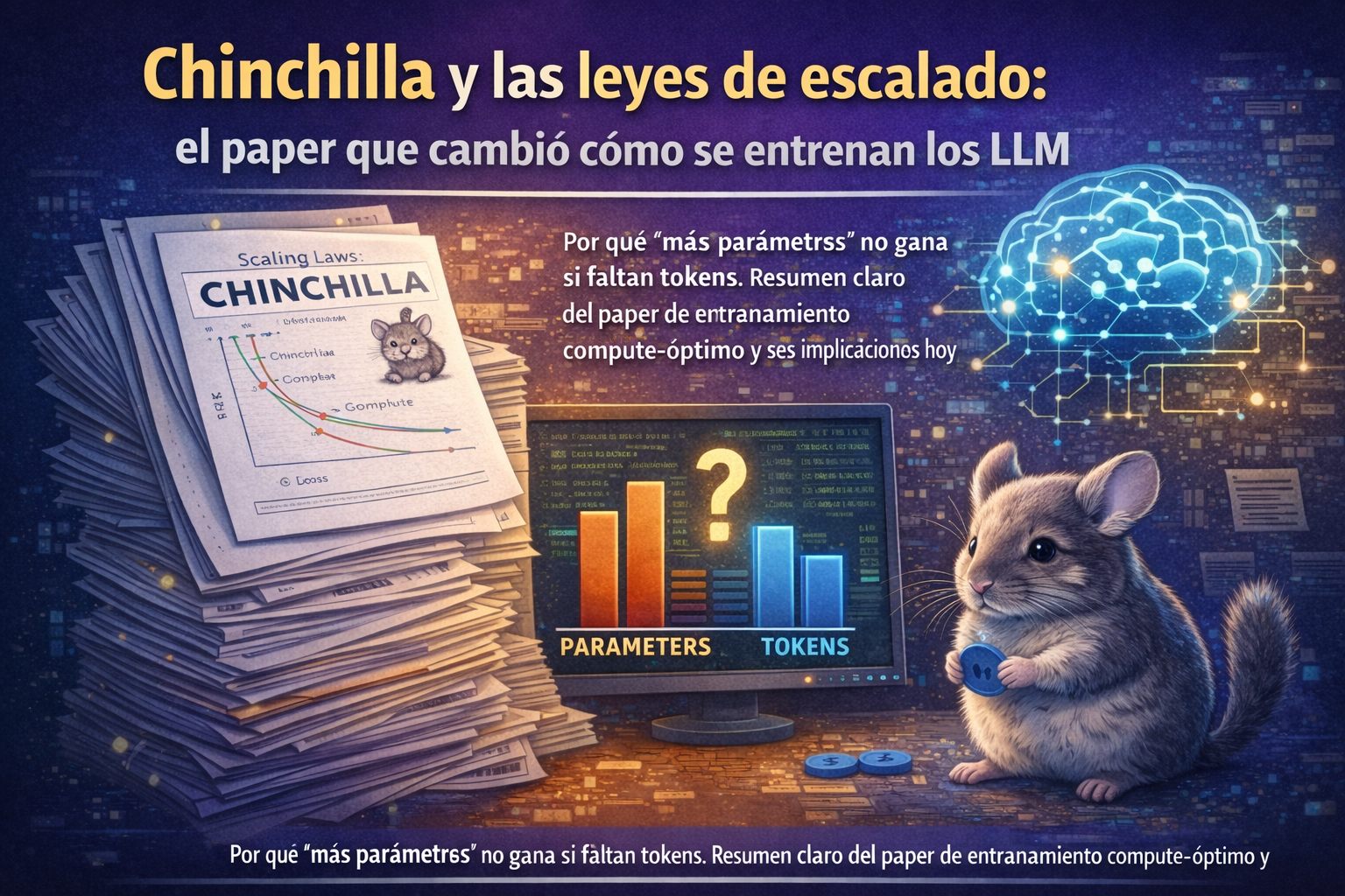 Por qué “más parámetros” no gana si faltan tokens. Resumen claro del paper de entrenamiento compute-óptimo y sus implicaciones hoy.