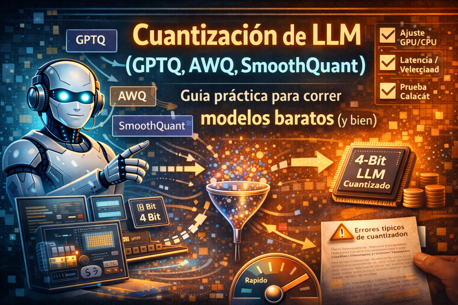 Cuantización de LLM (GPTQ, AWQ, SmoothQuant): guía práctica para correr modelos baratos (y bien)