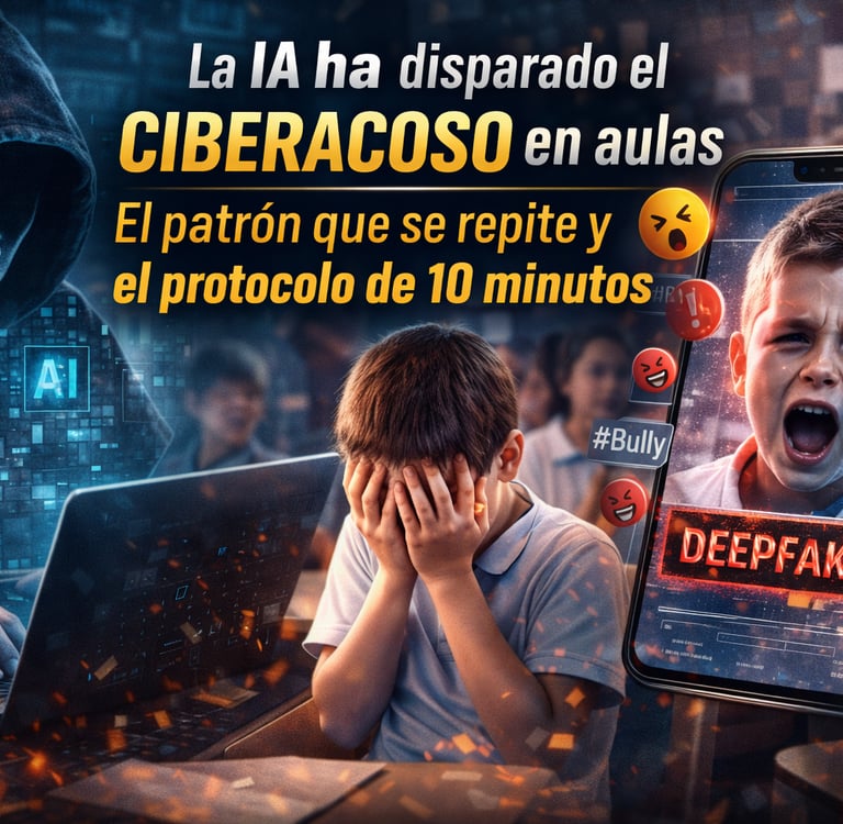 Casos reales + checklist rápido para familias y centros: cómo detectar suplantaciones, falsos desnudos y campañas de humillación antes de que explote.